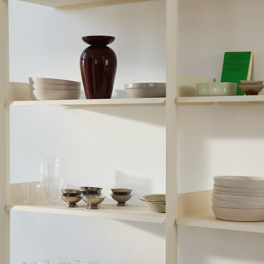 את הצורות הפיסוליות של כל אגרטל Momento ניתן לזהות לעתים קרובות בציוריו של חיון, שני היצירות הייחודיות מציגות זהות גרפית חזקה ושובבה. שניהם איקוניים באותה מידה בצורתם, ה-JH40 מגיע בצבע קרם רך, בעוד שה-JH41 זמין בירוק אזמרגד נועז - שני גוונים שנבחרו בשל הרבגוניות שלהם והקשר שלהם לצבעים הרעננים של הצמחייה. העיצוב בעל הצוואר הדק של אגרטלי Momento, המשרתים מטרה מעבר לאסתטיקה בלבד, דורש מהמשתמשים להיות בררנים בעת הנחת פרחים בתא, ומעודדים רגע של מודעות תוך כדי בניית זר.