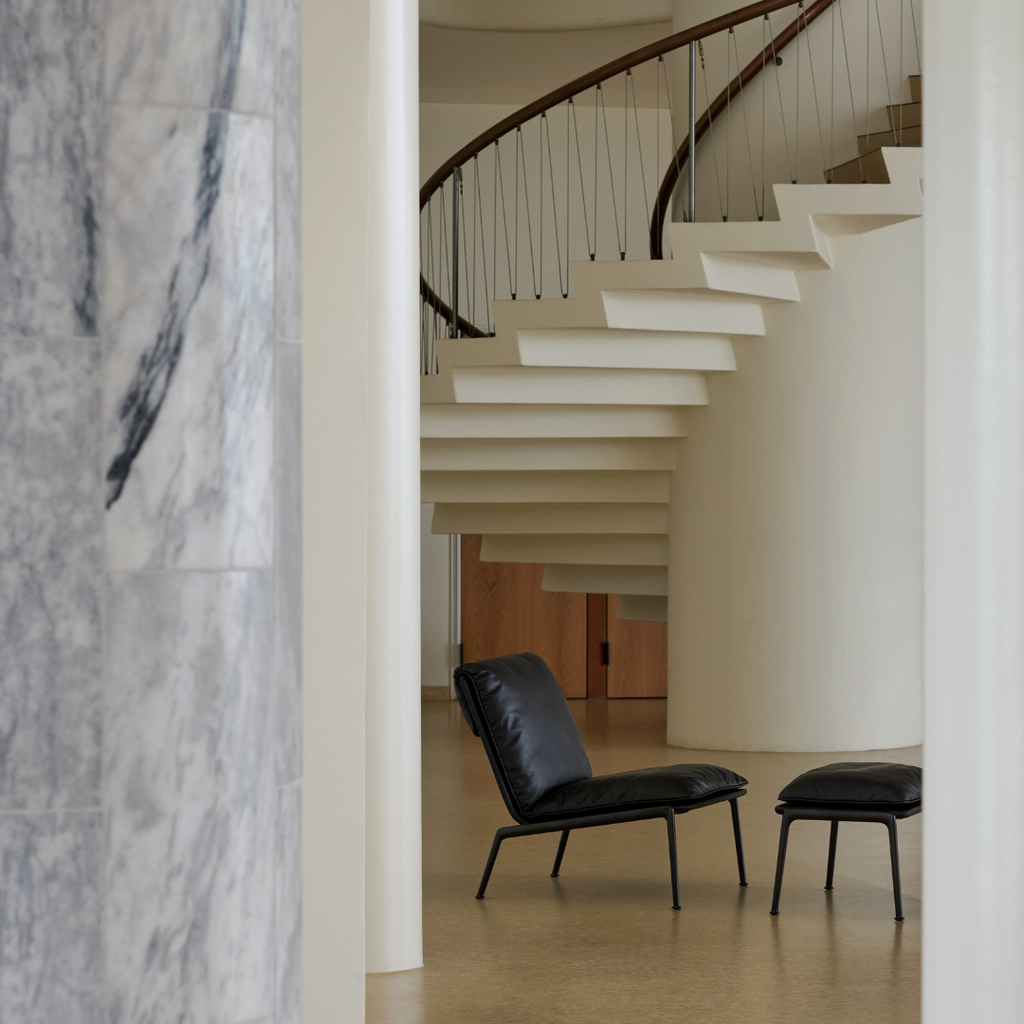 כיסא הנוחות Muno, המאופיין בכריות הקטיפה שלו ורגלי האלומיניום היצוקות והאלגנטיות, מציע את אותה חוויה מרתקת כמו מקבילתו הגבוהה יותר, בצורה קומפקטית יותר. מושב הכיסא ומשענת הגב, המסתובבים סביב כרית אחת, נראים כאילו הם תלויים על המסגרת כדי להשיג מראה רגוע אך מרוסן.