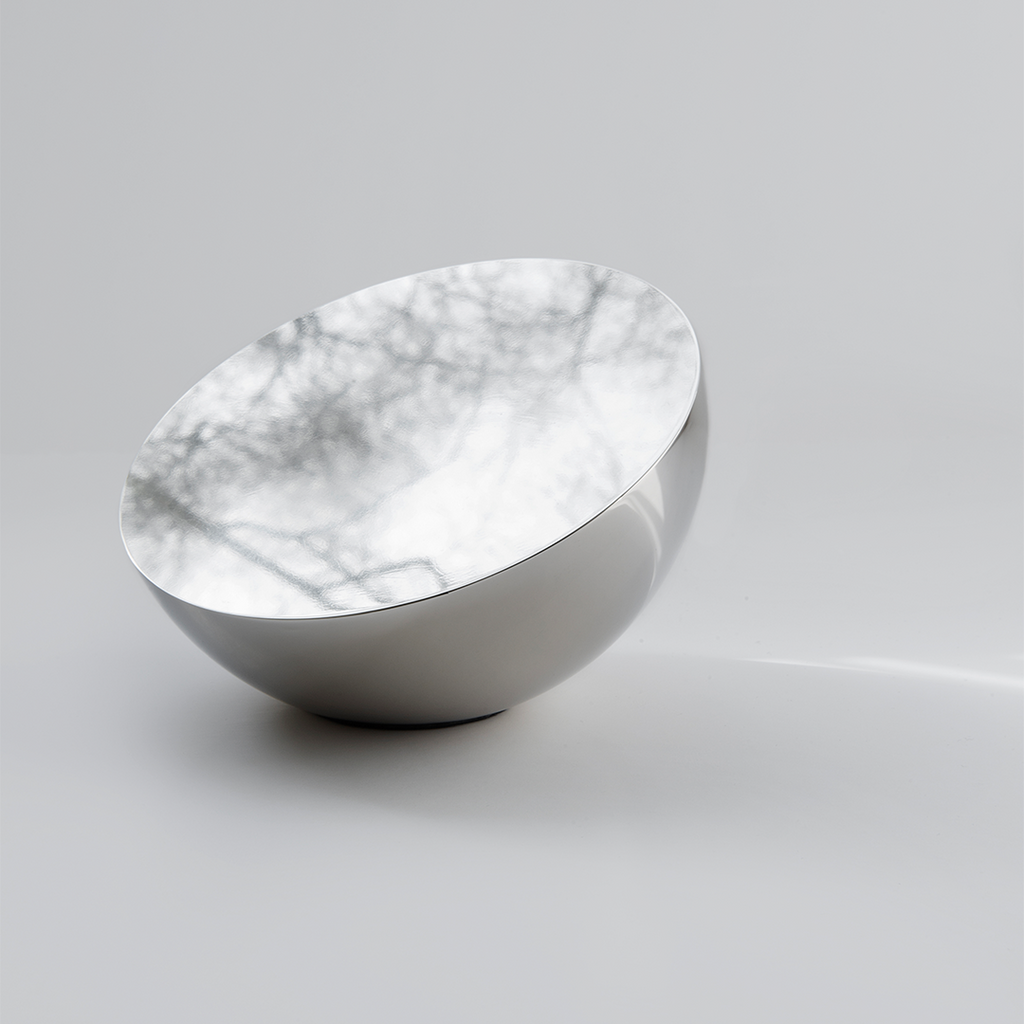 Aura Spejlets חומריות חזקה יוצרת יופי מיוחד לאובייקטים פשוטים. Den polerede metalform opfanger omgivende lys og יוצר שונות refleksioner באמצעות שילוב של הארד, שטח פני השטח og bløde kurver. Designet til at blive rørt and hold, opvejes Auras Borspejlets and weight of bloodhed in this glans and the skulpturelle buede form.