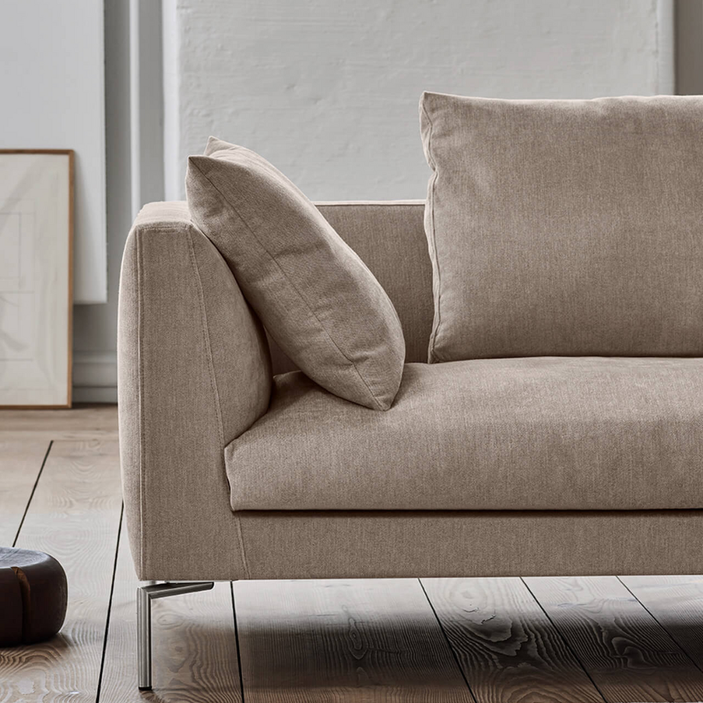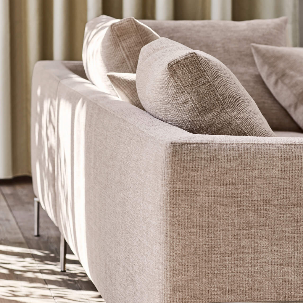 ניתן לבחור את הספה בגרסה קלאסית של 2 או 3 מושבים, או לשלב גרסת מודול ייחודית משלכם. רגלי הספה עשויות פלדה דקה, מה שגורם לה להיראות כאילו היא מרחפת ללא מאמץ על גביה. פרט מיוחד הוא משענת היד. יש לה חלק עליון צר של 8 ס"מ, אך היא מתרחבת ככל שהיא יורדת. זוהי התמיכה המושלמת.
