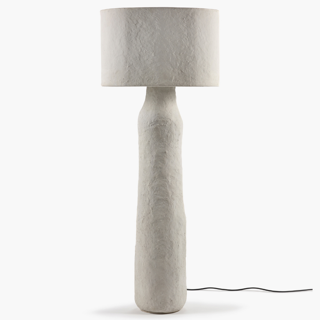 Resident designer Marie Michielssen completes her successful Earth lighting with two larger versions of her table lamps. As always, the paper mache material creates a poetic atmosphere and balances these floor lamps on the fine line between art and design.