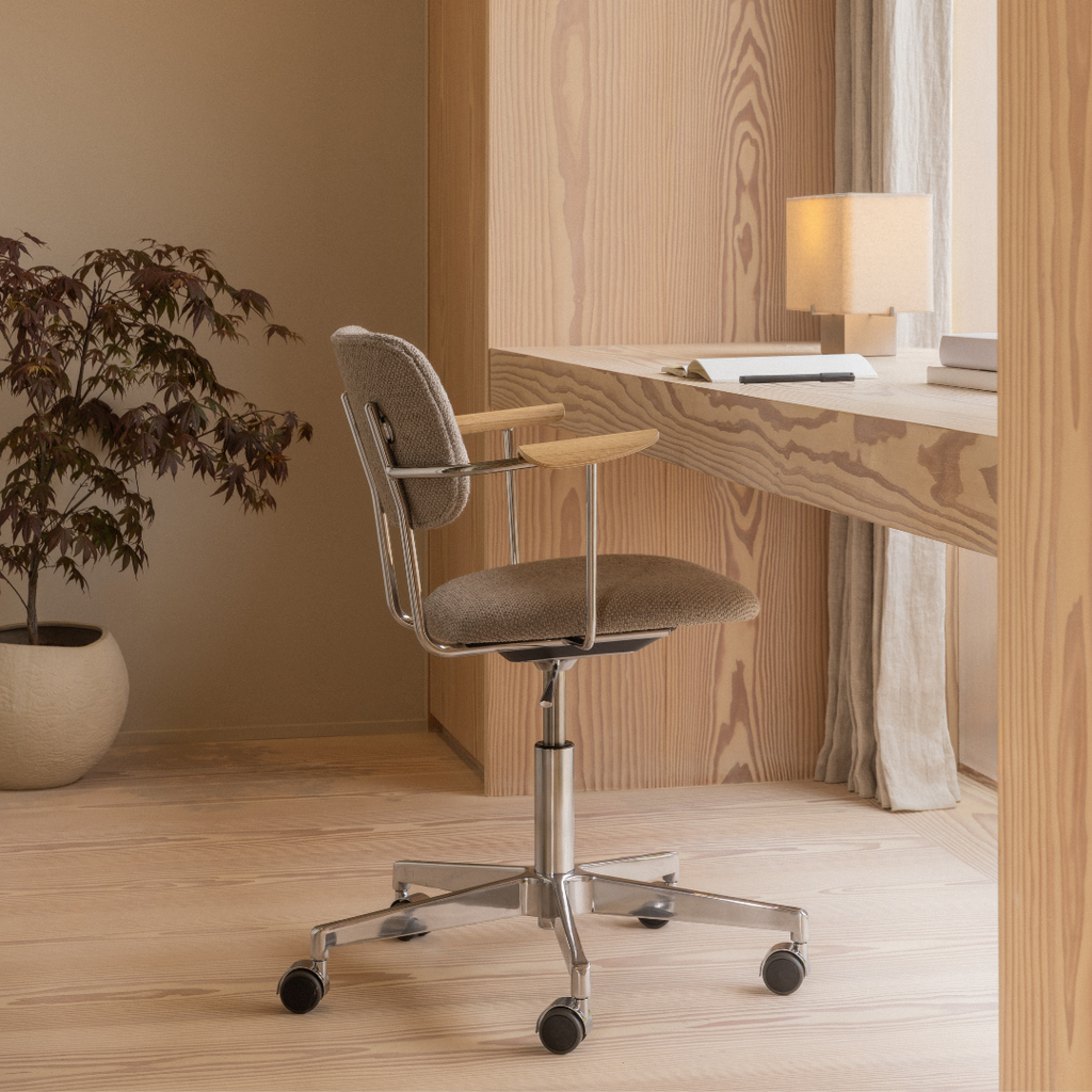 Light in scale yet grounded in presence, the H24 Nonna Table Lamp pairs a subtly textured sand-coloured textile shade with a cool brushed aluminium base. Designed for narrow ledges and intimate spaces, it offers a quiet contrast between softness and structure. The compact silhouette brings a gentle luminosity to shelves, bedside tables and windowsills alike. With a discreet switch and matching cord, the lamp is lighting pared back to its most considered form.