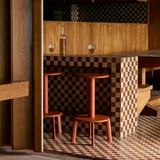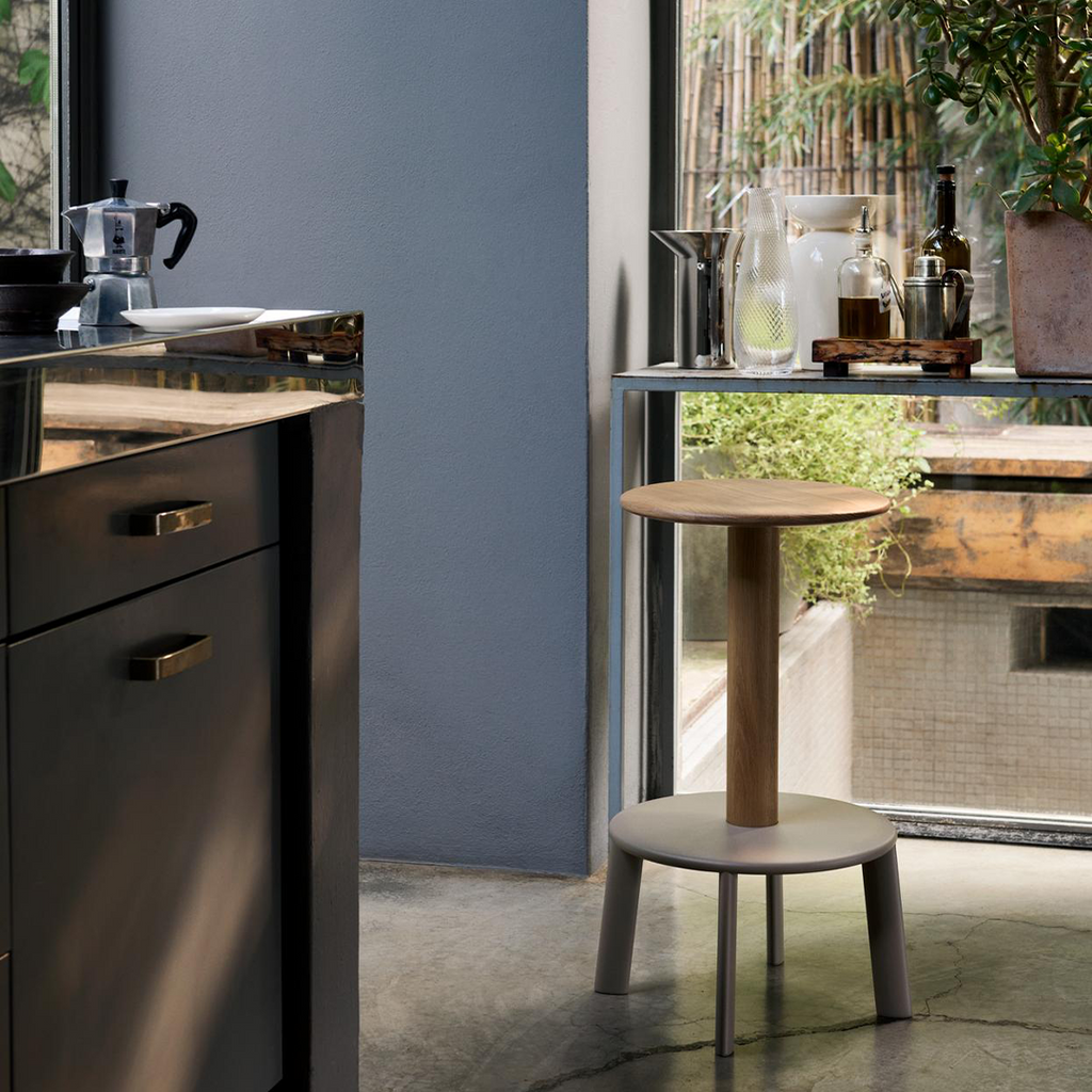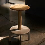 A graphically striking design with an anchoring sense of stability, Anderssen & Voll’s new Massif bar and counter stools denote a totemic silhouette in a compact form. Rich in materiality, the stool is complemented by the smooth swivel function of a solid oak seat.